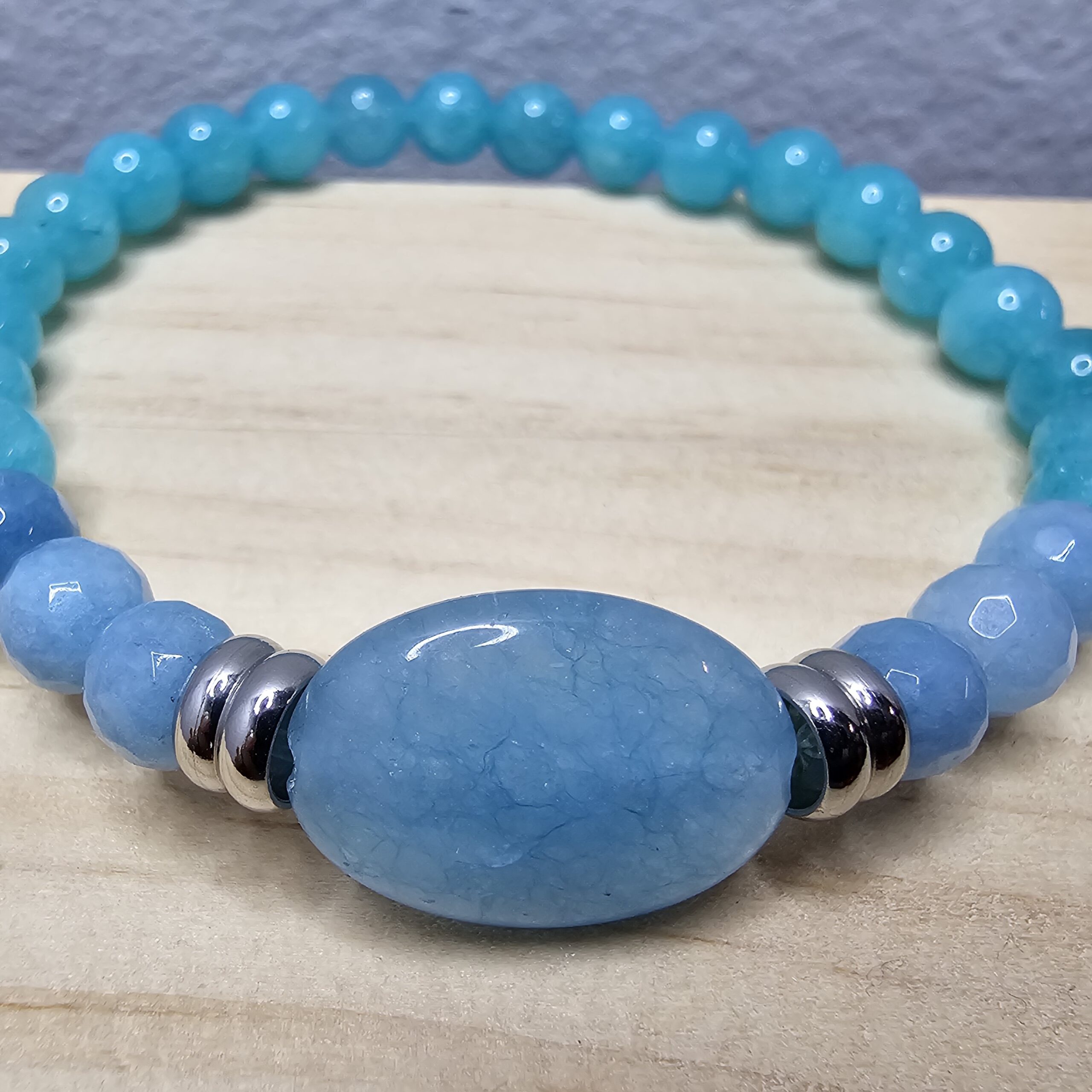 Il Bracciale Connessione Angelica in Pietra di Angelite e Turchese favorisce la connessione col Regno Angelico, rilassamento e chiarezza mentale, per una profonda crescita spirituale.